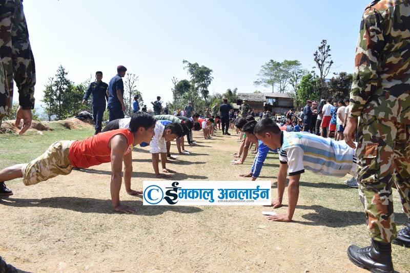 सङ्खुवासभा । सङ्खुवासभामा आज दोश्रो दिन पनि म्यादि प्रहरी छनौट कार्य जारी छ । आज खाँदबारी रंगशालामा शारिरिक तन्दुरुस्ती तथा स्वास्थ्य परिक्षण हुँदैछ । जस अन्तर्गत दौड र पुसअपको जाँच हुँदैछ । करिब पाँच सय जनाको कोटामा एक हजार नौ सय ९३ जनाले आवेदन दिएका थिए । हेरौ छनौटको क्रममा लिईएको केहि तस्विरहरुः