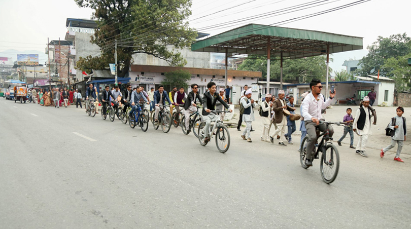 तर ब्याचलरमा सँगै पढेका शैलको बिहेमा जन्ती जाँदा साइकल चढेपछि उनको दिमागमा पनि साइकल जन्ती अभियानको राम्रै छाप परेको छ ।