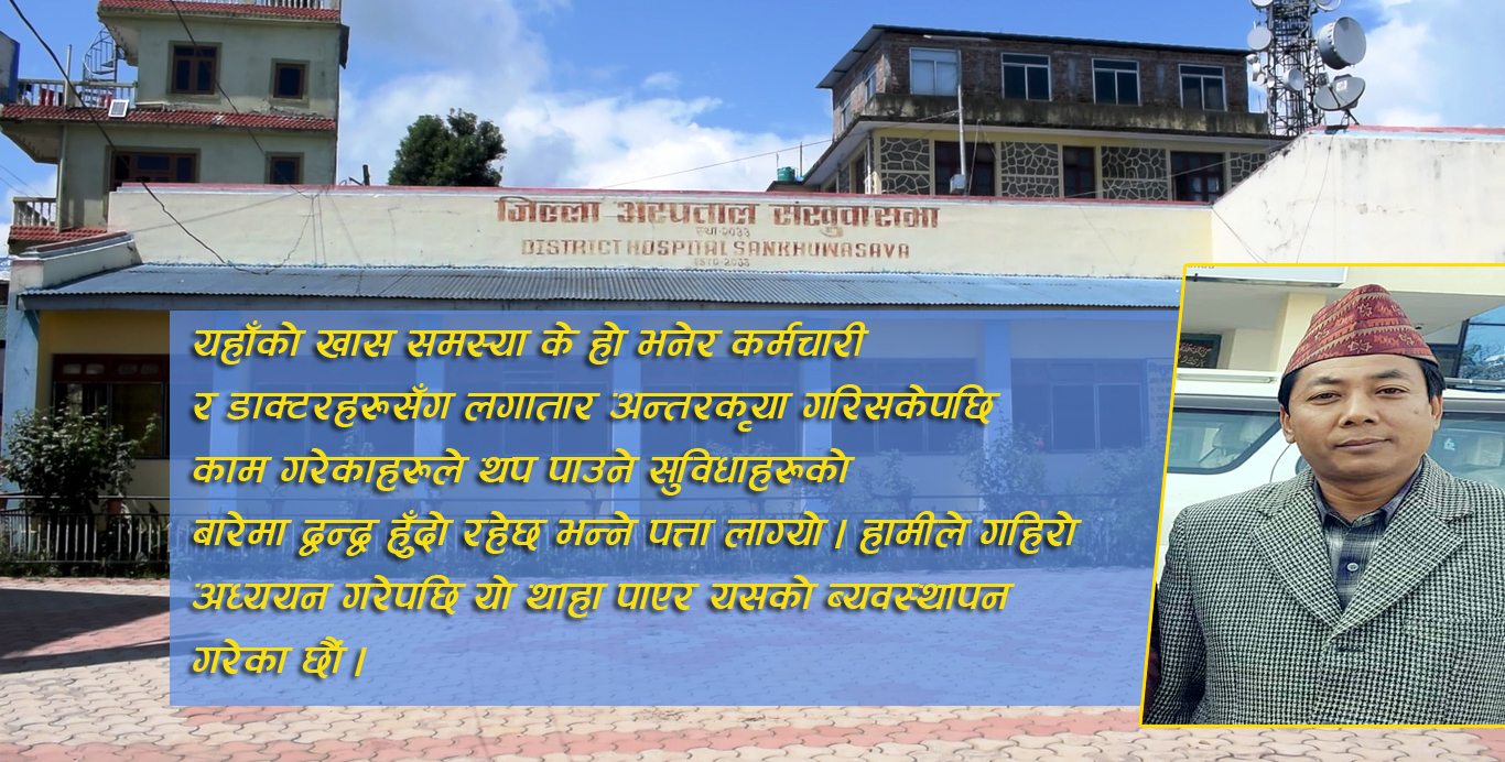 हिजोको समस्या भनेको स्थानीय सिष्टरहरु विच र मेसुहरुको द्वन्द्व हो । स्थानीय सरकार आईसकेपछि स्थानीय कर्मचारीहरुले घर पायक काम गर्ने निति आयो, त्यहि भएर स्थानीय कर्मचारी सरुवा गराउन सकिएन । तथापी यहाँको खास समस्या के हो भनेर कर्मचारी र डाक्टरहरुसँग लगातार अन्तरकृया गरिसकेपछि काम गरेकाहरुले थप पाउने सुविधाहरुको बारेमा द्वन्द्व हुँदो रहेछ । हामीले गहिरो अध्ययन गरेपछि यो थाहा पाएर यसको ब्यवस्थापन गरेका छौं । जस्ले काम गर्छ, उसले पाउने ब्यवस्था गरेपछि सो समस्या सकियो । अर्को कुरा सवैले काम गर्नु पर्छ, अपनत्व सवैले महसुस गर्नुपर्छ भन्ने विषयमा समिति र कर्मचारीहरु विच निरन्तर छलफल हुदै आएको छ ।