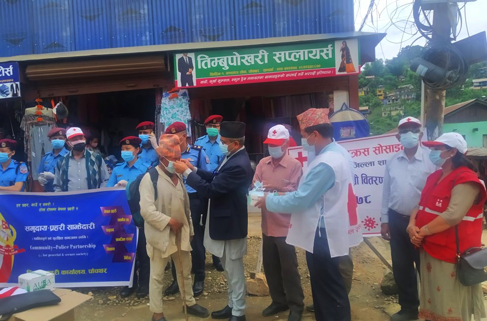 नेपाल रेडक्रस सोसाइटी जिल्ला शाखा पाँचथरको अगुवाई तथा जिल्ला प्रहरी कार्यालय पाँचथरको समन्वयमा सर्वसाधरणका लागि १ हजार थान मास्क र सेनिटाईजर वितरण गरिएको हो । कोरोना संक्रमण दर न्यूनीकरण हुनुको साटो दिनानुदिन संक्रमितको संख्या वढ्न थालेपछि नागरिकलाई सर्तकता अपनाउन र सचेतना फैलाउने उद्धेश्यले मास्क वितरण गरिएको नेपाल रेडक्रस सोसाइटी जिल्ला शाखा पाँचथरका शाखा अधिकृत गुरुराज तिम्सिनाले जानकारी दिए ।