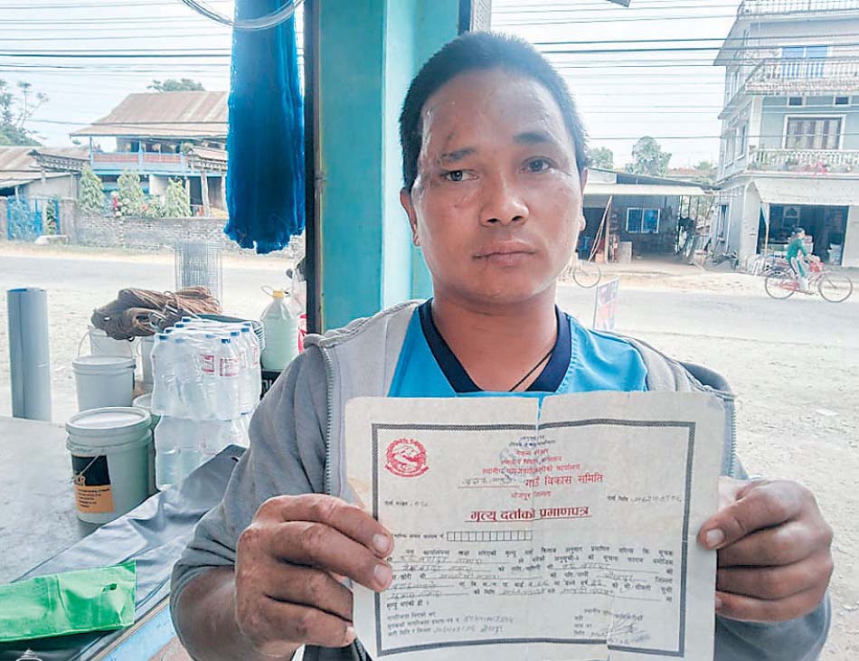 विराटनगर — मृत्युलाई खण्डन गर्ने प्रमाण के हो ? त्यो जीवन नै हो । यहाँका एक युवक आफू जीवित रहेको दाबी गर्दै सरकारी अड्डा लगातार धाइरहेका छन् तर उनको मृत्यु दर्ता खारेज हुन सकेको छैन । ‘म जिउँदै छु, लौ हेर्नुस् भनेर जतिपटक जिरह गर्दा पनि पार लागेन,’ मोरङ बेलबारी नगरपालिका–११ लक्ष्मीमार्गका सुभाष तामाङले हैरानी सुनाए ।