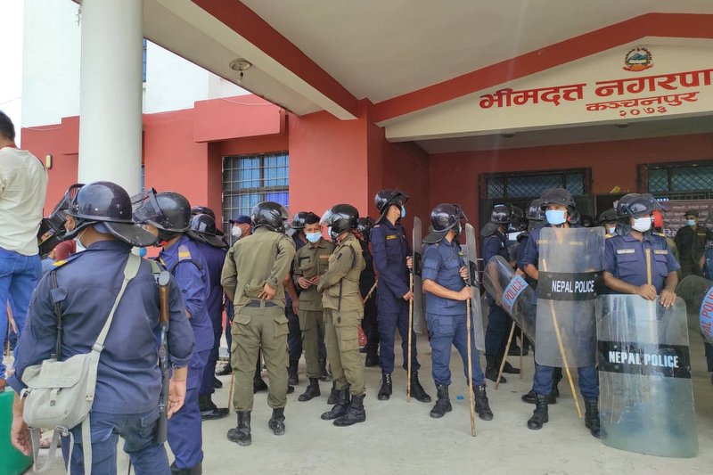 कञ्चनपुर । भीमदत्त नगरपालिकामा शिक्षक दरबन्दी मिलानमा असहमति जनाउँदै धर्नामा बसेका नेपाल शिक्षक संघ आबद्ध शिक्षक र सुरक्षाकर्मीबीच झडप भएको छ। झडप हुँदा १२ जना बढी घाईते भएका छन्। प्रहरीमाथि चौतर्फी ढुङ्गा प्रहार हुन थालेपछि अश्रुग्याँस प्रहार गरिएको छ। सुरक्षाकर्मीले ढुङ्गा प्रहार रोक्न नगरपालिका कार्यालयबाट अश्रुग्याँस प्रहार गरेका हुन्।