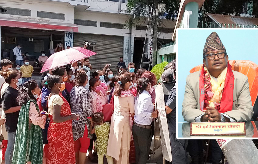 सुनसरी । इटहरीका महिलाहरूले मेयर द्वारिकलाल चौधरीको कार्यकक्षमा तालाबन्दी गरेका छन् । मेयरले महिला सेवाग्राहीलाई अपशब्द बोलेको भन्दै विरोधमा उत्रिएका उनीहरूले उपमहानगरपालिका गेट अगाडि नाराबाजीसमेत गरेका छन् ।