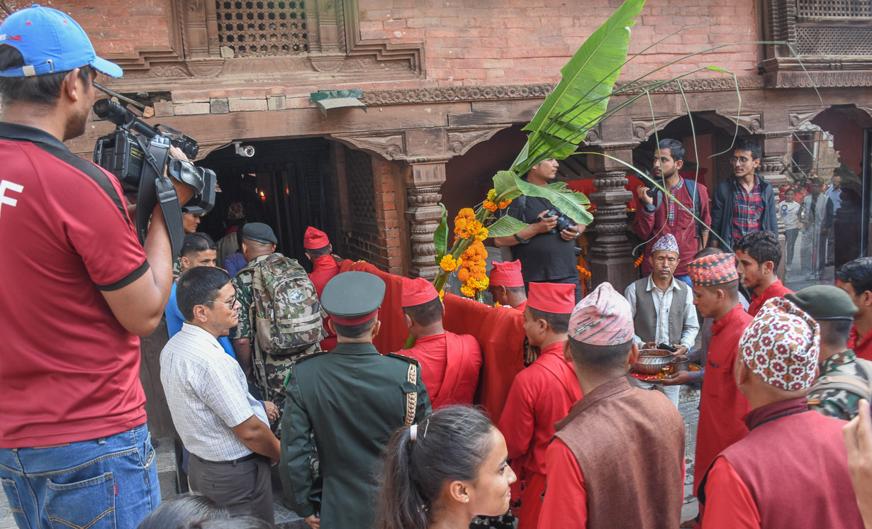 जमलबाट हनुमानढोकासम्म निजामती सेवाका उच्च पदस्थ अधिकारीहरु, गुर्जुका पल्टन, ब्याण्डबाजा, पञ्चेबाजा र सांस्कृतिक नाचगानसहितको लावालस्करका साथमा फूलपाती ल्याउने गरिन्छ ।