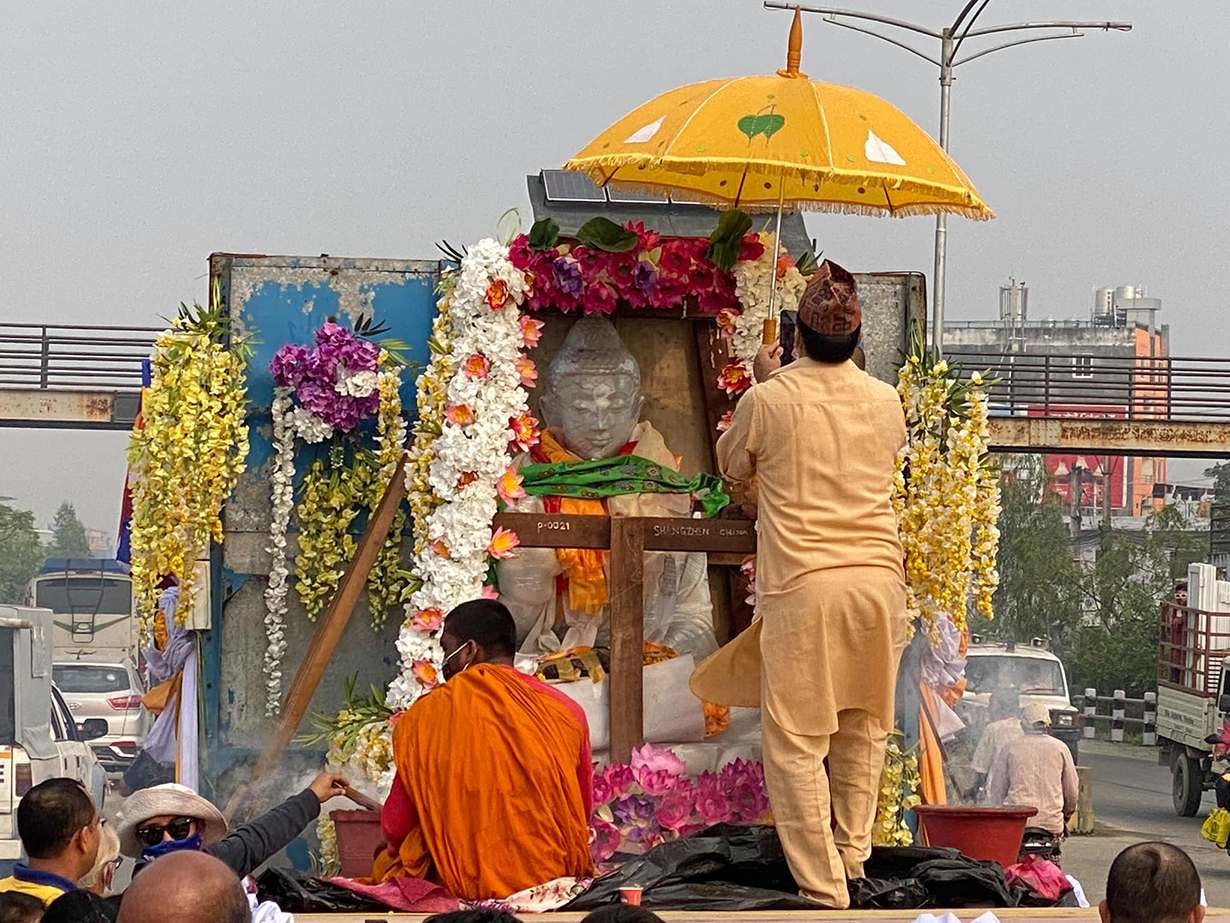 उक्त मूर्तिलाई शनिबार भैरहवा बजार परिक्रमापश्चात गौतमबुद्ध विमानस्थलमा ल्याएर राखिएको छ ।