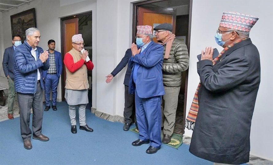 मंगलबारको भेटमा प्रधानमन्त्रीसँगै कांग्रेस उपसभापति पूर्णबहादुर खड्का थिए । नेकपा एमालेका तर्फबाट ओलीसँगै वरिष्ठ उपाध्यक्ष ईश्वर पोखरेल, उपाध्यक्ष विष्णुप्रसाद पौडेल र उपमहासचिव विष्णु रिमाल सहभागी थिए ।