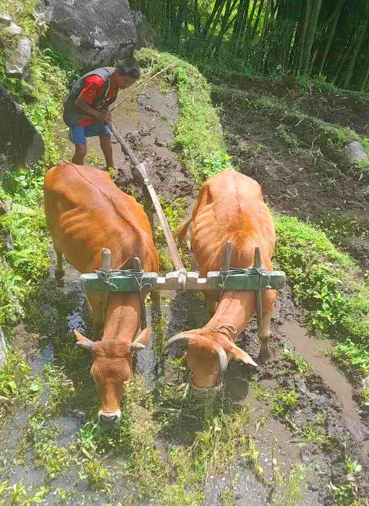 मानाे खाएर मुरी उब्जाउने बेलामा हल गाेरु नै गुमाएका राईले जाेत्दै गरेकाे हल गाेरु पाएपछि यत्ति बेला उनकाे खुसीकाे सिमा छैन । दाताबाट प्राप्त गाेरु कृषक राईले जाेत्न थालेका छन् ।