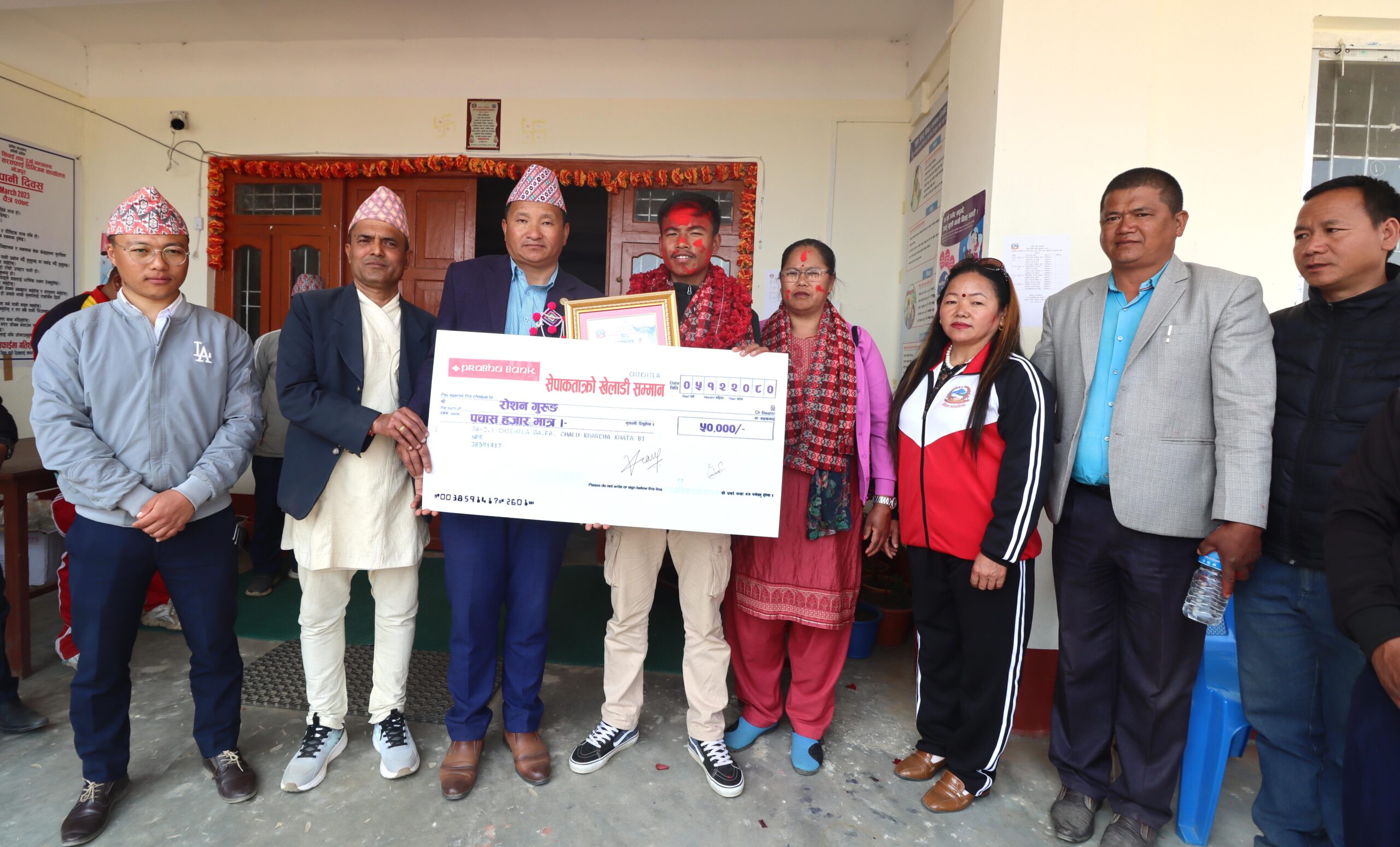 दक्षिण एसियाली खेलकुदमा सेपाकताक्रो खेलमा राष्ट्रिय टिमबाट खेलेर उपविजेता बनेको गुरुङलाई गाउँपालिकाले ५० हजार रुपैयाँ नगद सहित सम्मान पत्र प्रदान गरेकाे छ । त्यस्तै धरान रन अण्डर १६ का विजेता राईलाई नगद १५ हजार रुपैयाँ र सम्मान पत्र प्रदान गरिएको छ ।