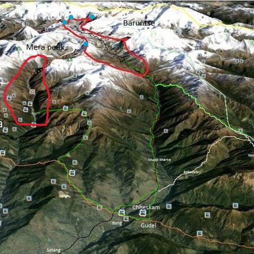 महाकुलुङमा हिमाल आरोहण अन्तर्गतकाे पर्यटन विकास भन्नाले इङखु उपत्यकाको शिर र हुङगु उपत्यकाको शिरमा अवस्थित करिब एक दर्जन हिमाल आरोहण र केही उच्च हिमाली पदमार्गहरुसंग महाकुलुङलाई जोडने विकास भनेर बुझनुपर्दछ । सोताङको पावै र माप्य दुधकोशीको वाकु बीचबाट बग्ने इङखु नदीको उद्गम बिन्दु तामापोखरी हो । महाकुलुङभित्र पर्ने तामापोखरी क्षेत्रभन्दा माथीका भूभागहरु हिमालहरुले घेरिएर तामापोखरी क्षेत्र एउटा उपत्यका बनेको छ । यो उपत्यकाबाट पूर्बी उत्तरतर्फको ५,४१५ मिटरको मेराला भञ्ज्याङ पार गरेपछि अर्को उपत्यकाभित्र सेतीपोखरी भेटिन्छ । सेतीपोखरी पुग्नुभन्दा अगाडी मेराला भञ्ज्याङकै रेन्जमा ६,४७५ मिटरको मेरा पिक हिमाल भेटिन्छ । पर्यटन मन्त्रालयको सन् २०१९ को तथ्याङ्क अनुसार त्यस वर्ष जम्मा १,७२८ जना पर्वतारोहीहरुले मेरापिक चढेका थिए ।