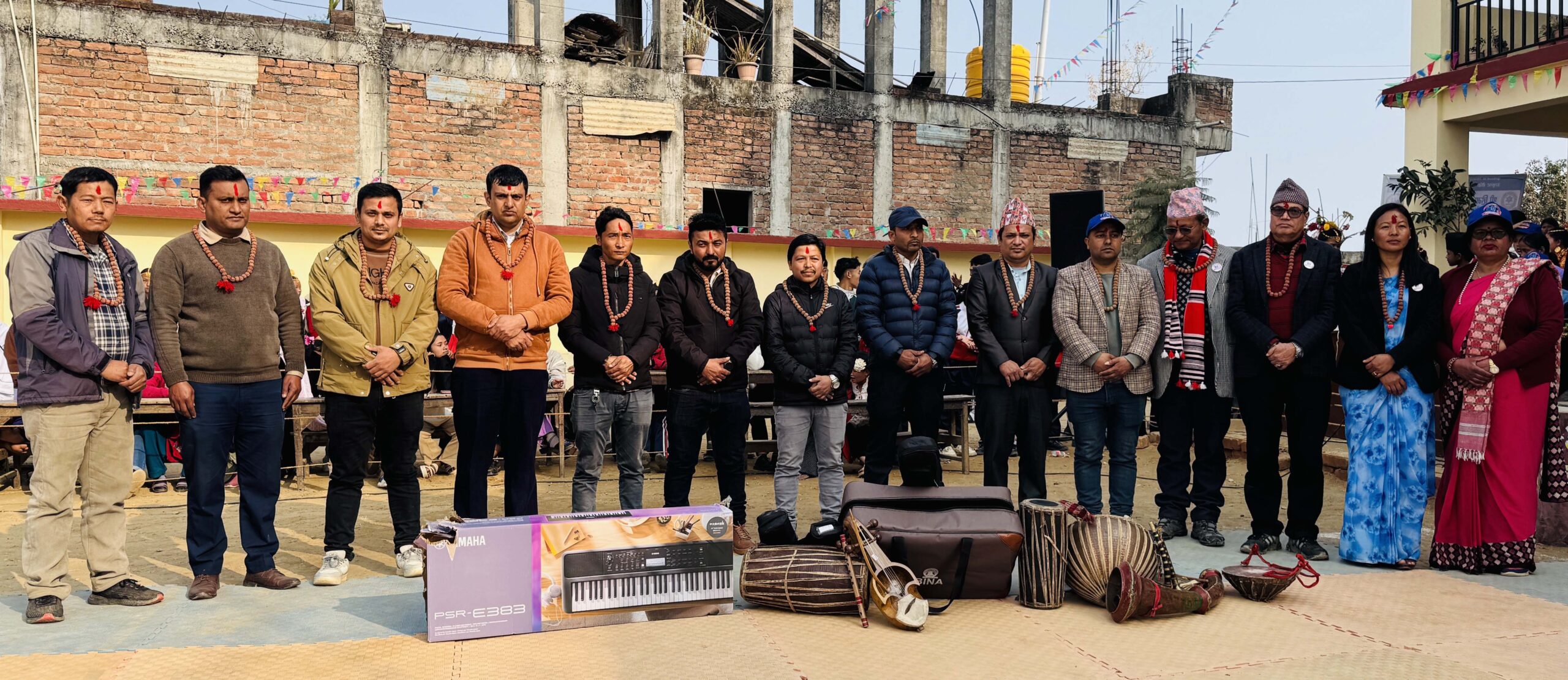 २०६० का एसएलसी ब्याच विद्यार्थीहरुले विहिबार २ लाख ७५ हजार रुपैयाँ बराबरको साँगितिक वाद्यवादनका सामग्रीहरु हस्तान्तरण गरे । विद्यालयमा संगीत कक्षा सञ्चालन गर्न आवश्यक सामग्रीहरु पूर्व विद्यार्थीहरुले हस्तान्तरण गरेका हुन् । उनीहरुले पन्चेबाजाहरु (नरसिङ्गा, सहनाई, दमाहा, झ्याम्टा, ट्याम्को) सारङ्गी, बांसुरी, मादल, तबला, हार्मोनियम, किबोर्ड (पियानो), गितार, ड्रमसेट सहितका सांगीतिक सामग्रीहरु आज विहिबार विद्यालयलाई हस्तान्तरण गरको हुन् ।