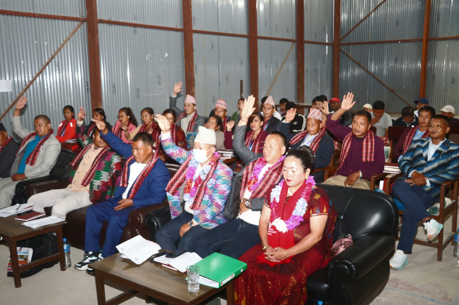 गाउँसभामा सभाअध्यक्ष पासाङ नूर्वु शेर्पाले नीति तथा कार्यक्रम पेश गर्नुभएको थियो । उक्त नीति तथा कार्यक्रम सर्वसम्मत पारित गरिएको थियो । त्यस्तै गाउँसभा सदस्य एवम् सभासदस्य मनकला राईले पेश गरेको न्यायिक समितिले उजुरीको कारवाहि किनारा तथा फैसला कार्यन्वयन गर्दा अपनाउनु पर्ने कार्यविधि सम्बन्धि विधेयक समेत सर्वसम्मत पारित गरेको छ ।