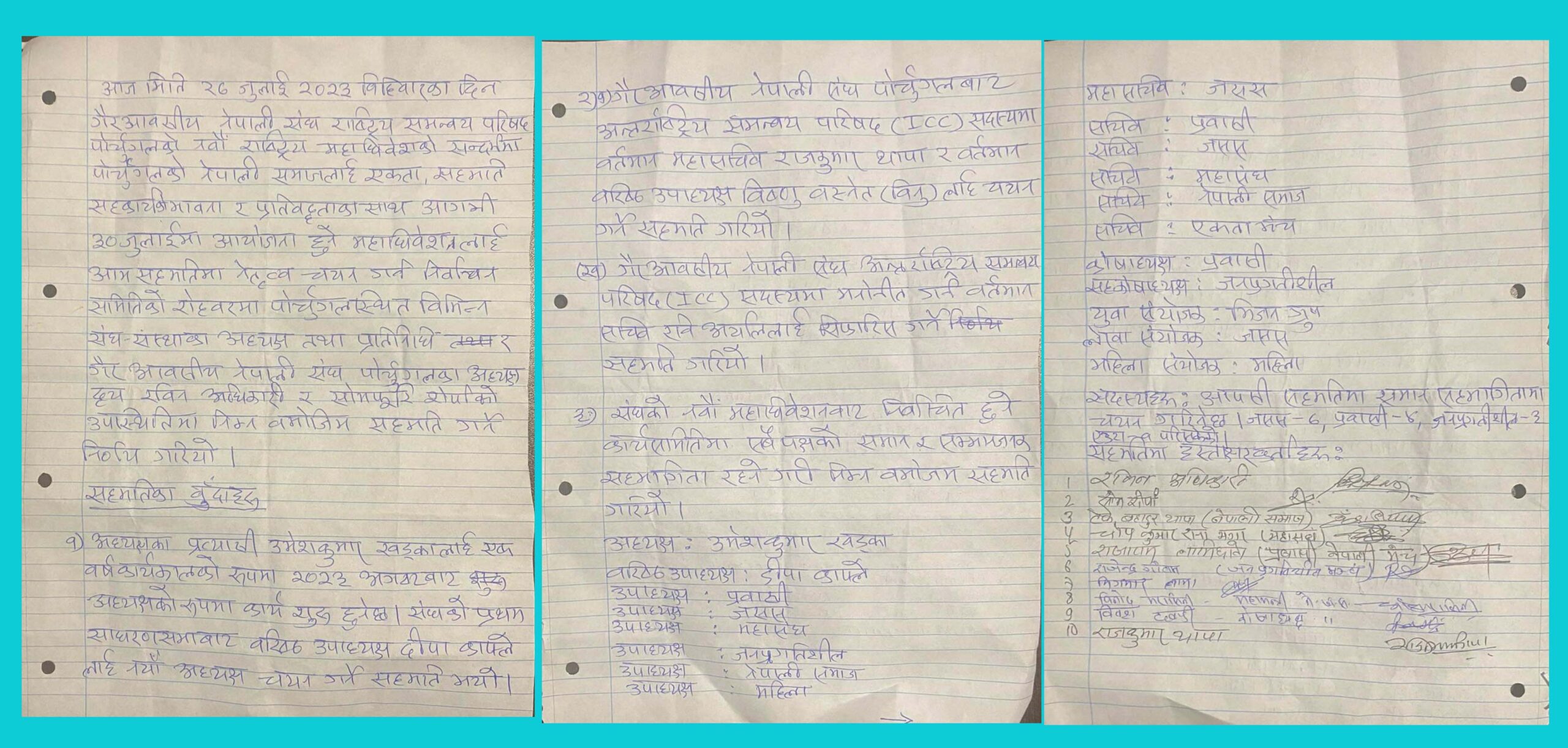 यसका लागि आवश्यक प्रावधान अनुसूची थपेर विधानमा समावेश गर्ने गरी पारित गरेका थिए । समितिका बाँकी पदाधिकारी तथा सदस्यहरु यथावत रहने भनिएको थियो । बन्दशत्रले पारित गर्नु अगाडि महाधिवेशन बाहिर केही सरोकारवाला व्यक्तिहरु बसेर लिखित सहमति पनि भएको थियो । सहमतिमा तत्कालीन अध्यक्षद्वय रबिन अधिकारी तथा सोमफूरी शेर्पा, तत्कालीन महासचिव राजुमार थापा, प्रवासी मञ्चका तर्फबाट तत्कालीन अध्यक्ष राजाराम लामिछाने, जनसम्पर्क समितिका तर्फबाट महामन्त्री विनोद मरासिनी, नेपाल आदिवासी जनजाति महासंघका तर्फबाट चोपकुमार मगरलगायतले हस्ताक्षर गरेका थिए ।