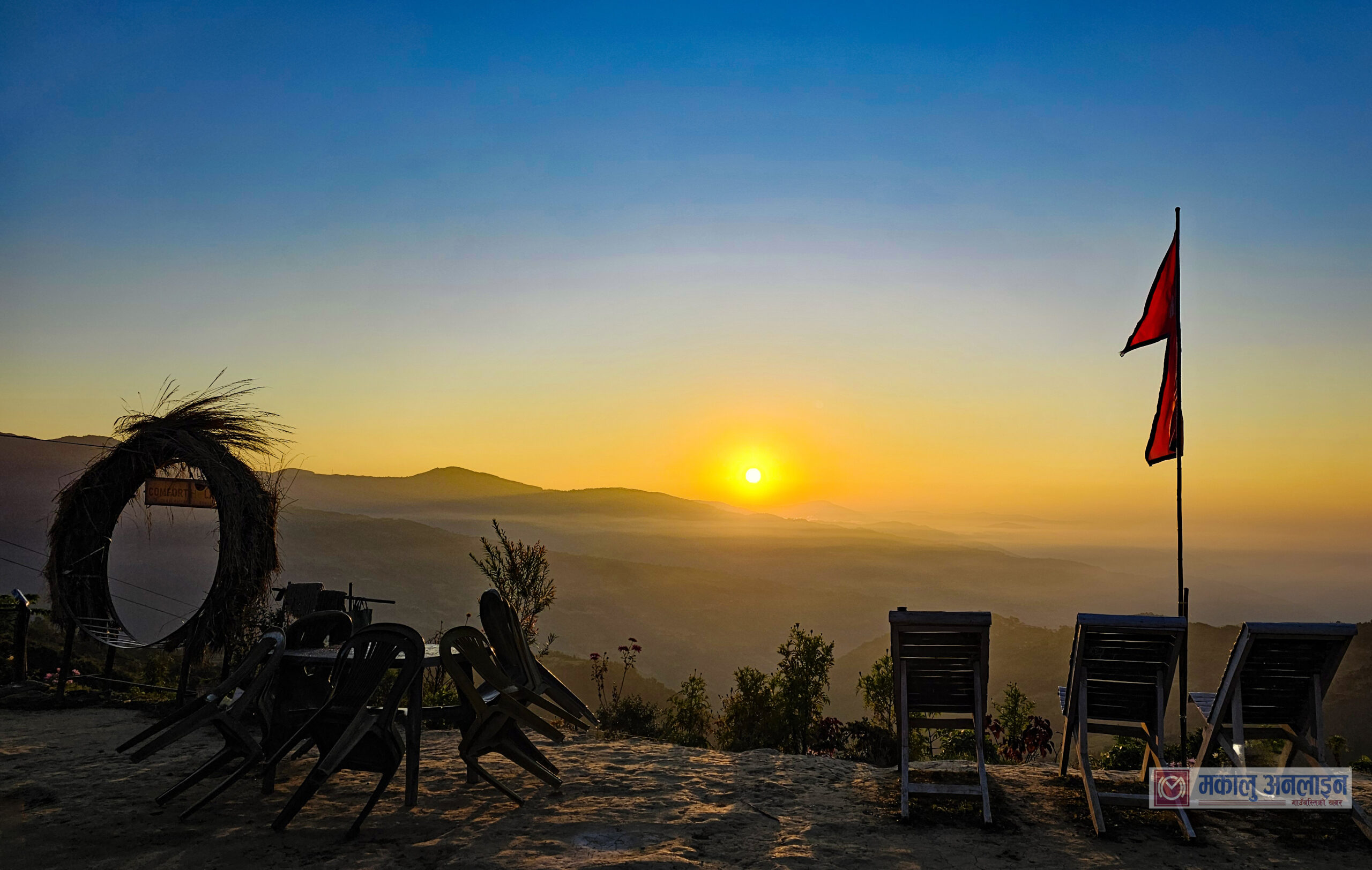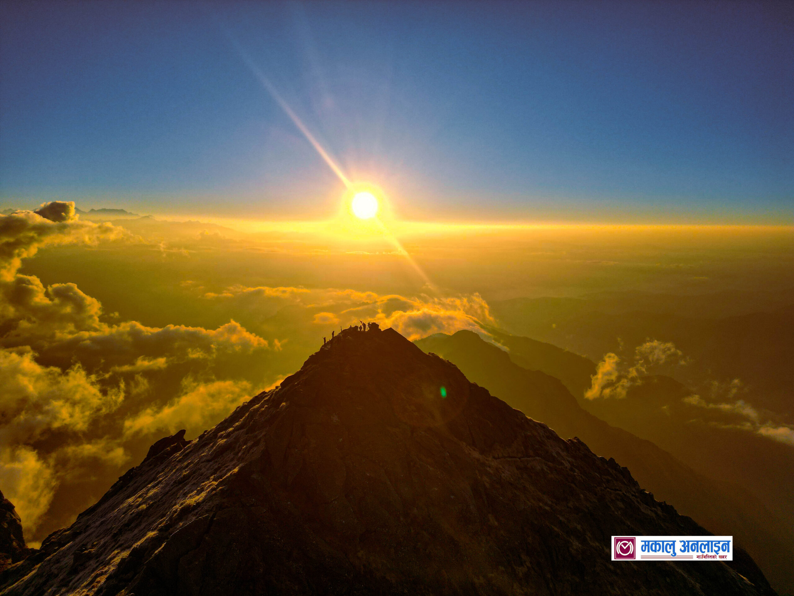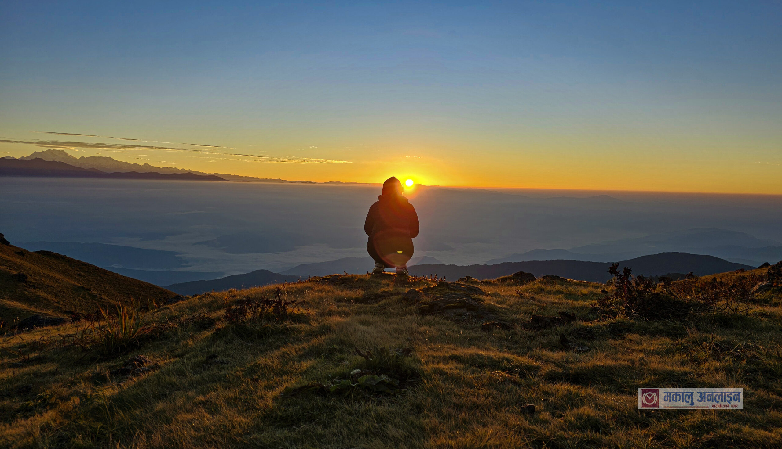 मैयुमको टपबाट विहानै देखिएको सुर्योदयको दृश्य