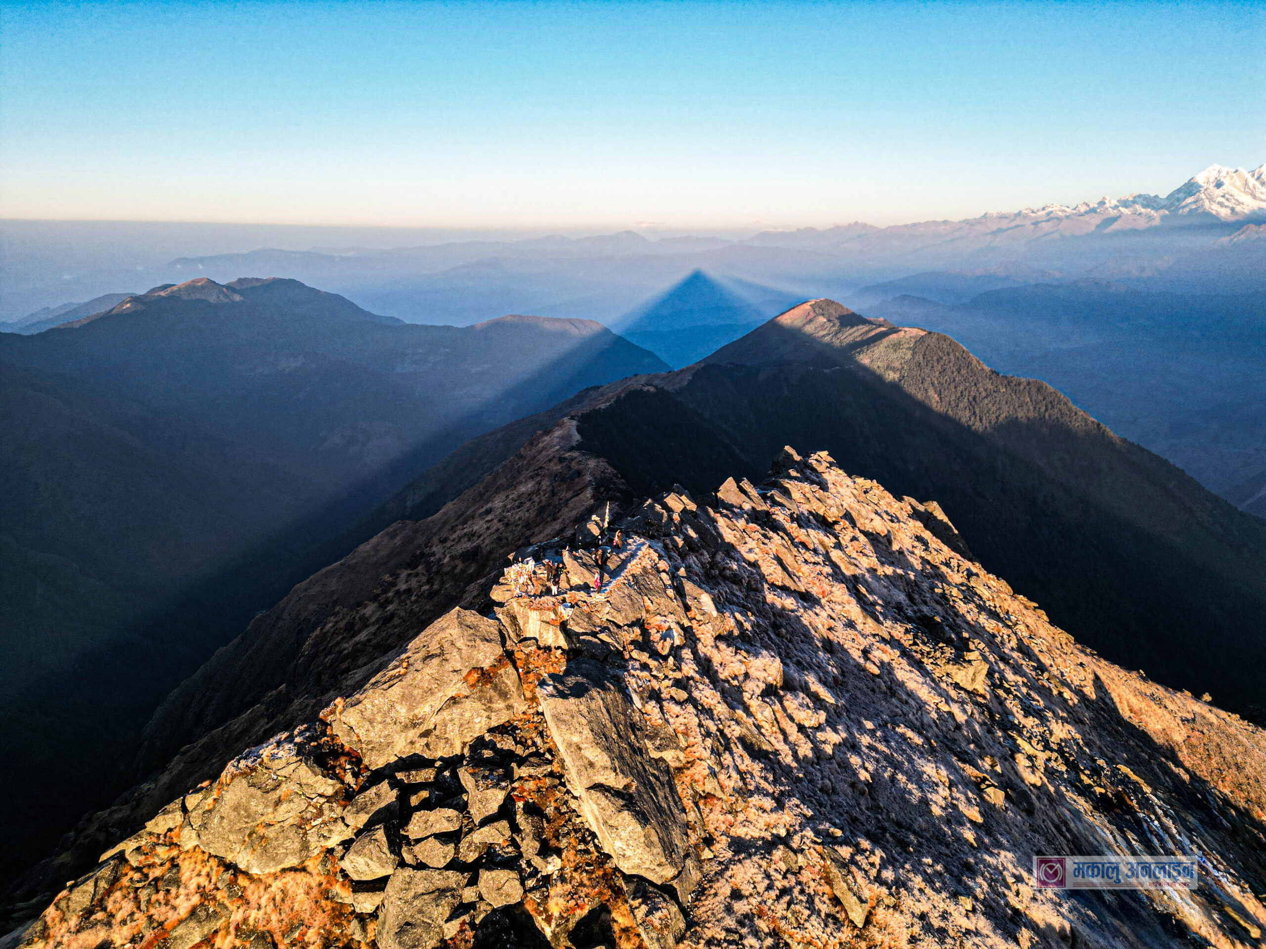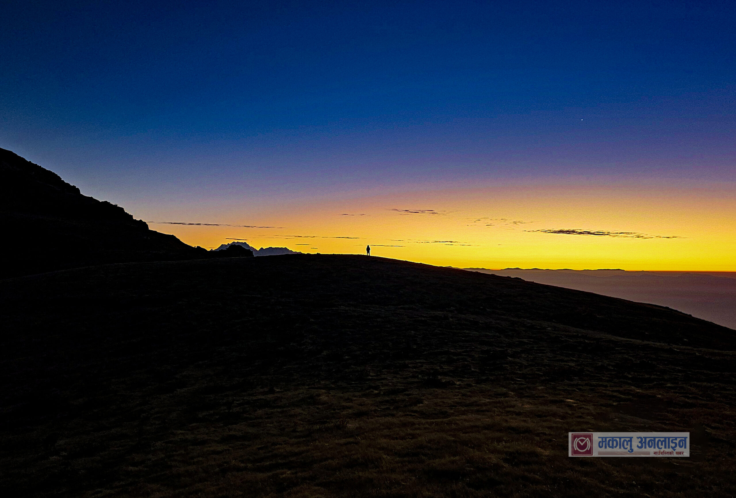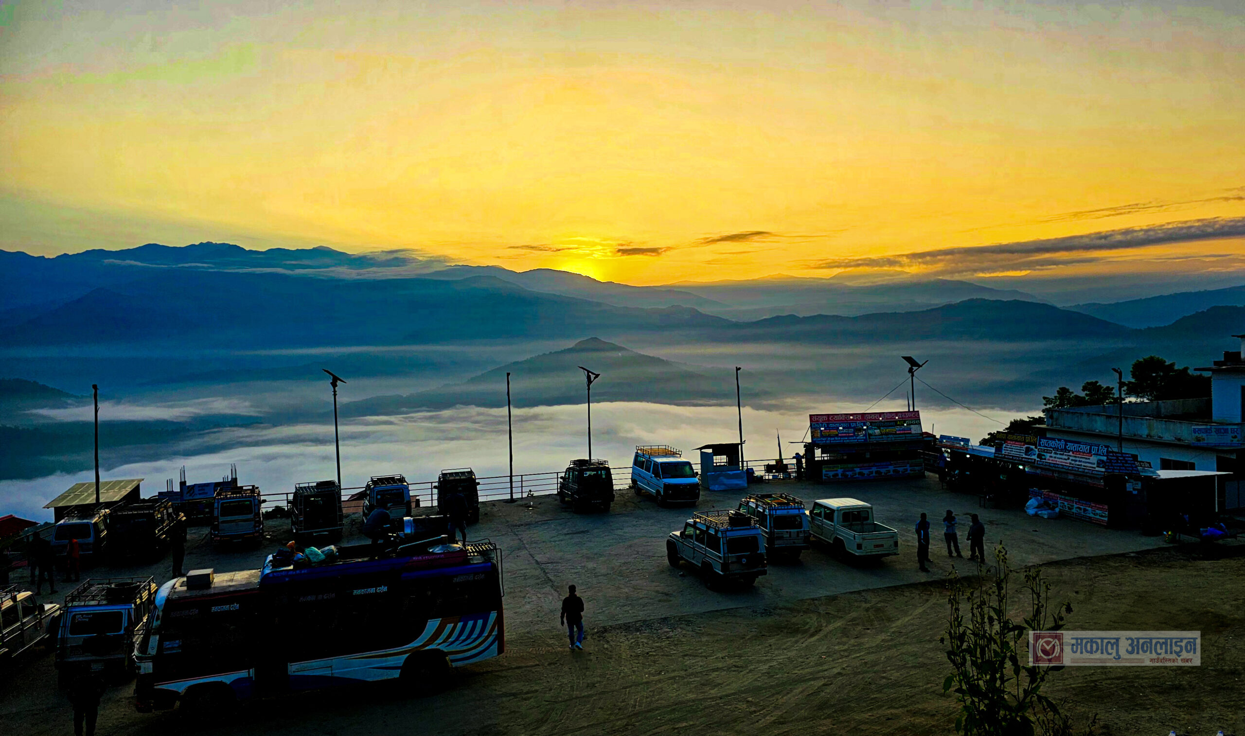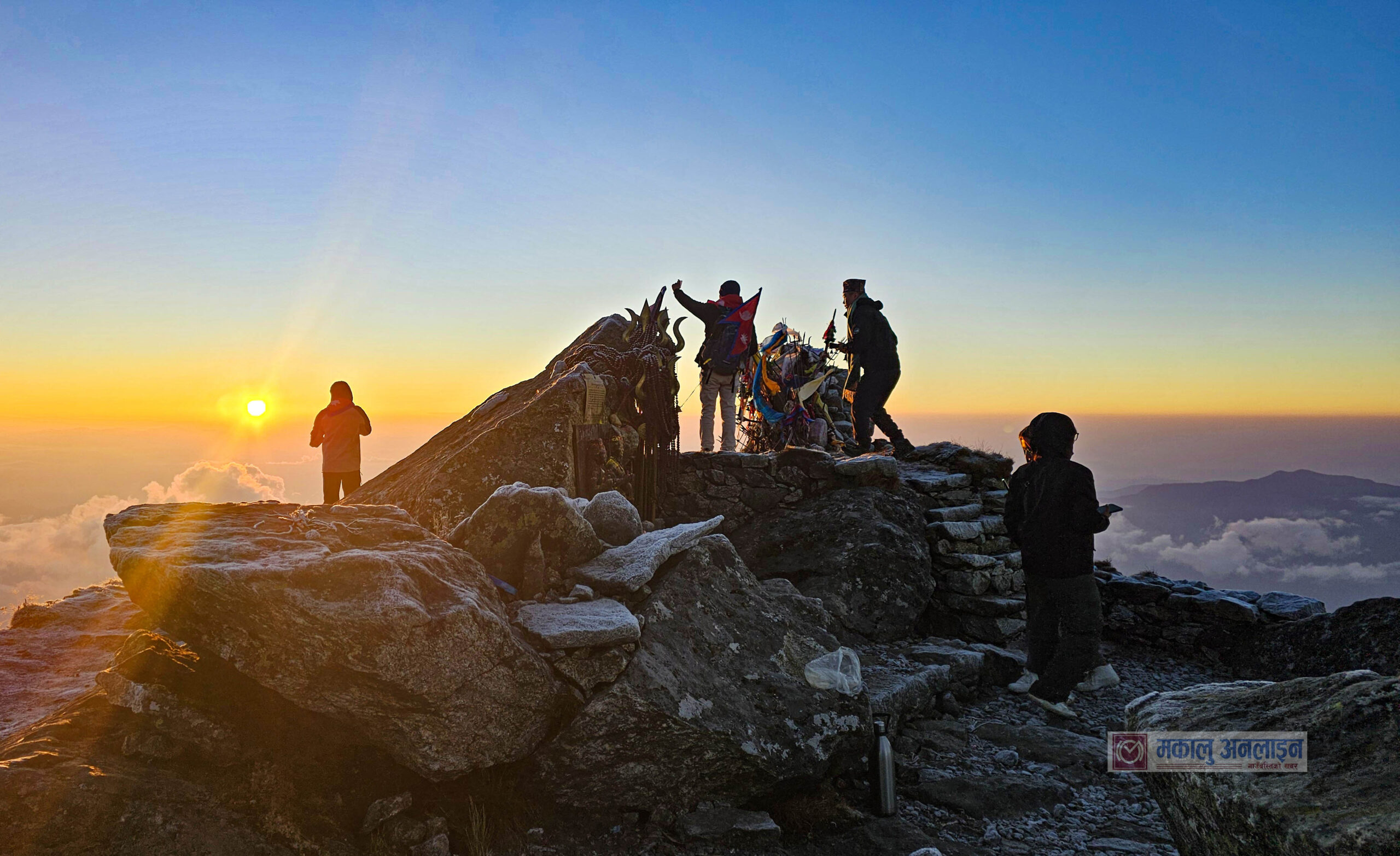 मैयुमको टपबाट विहानै देखिएको सुर्योदयको दृश्य