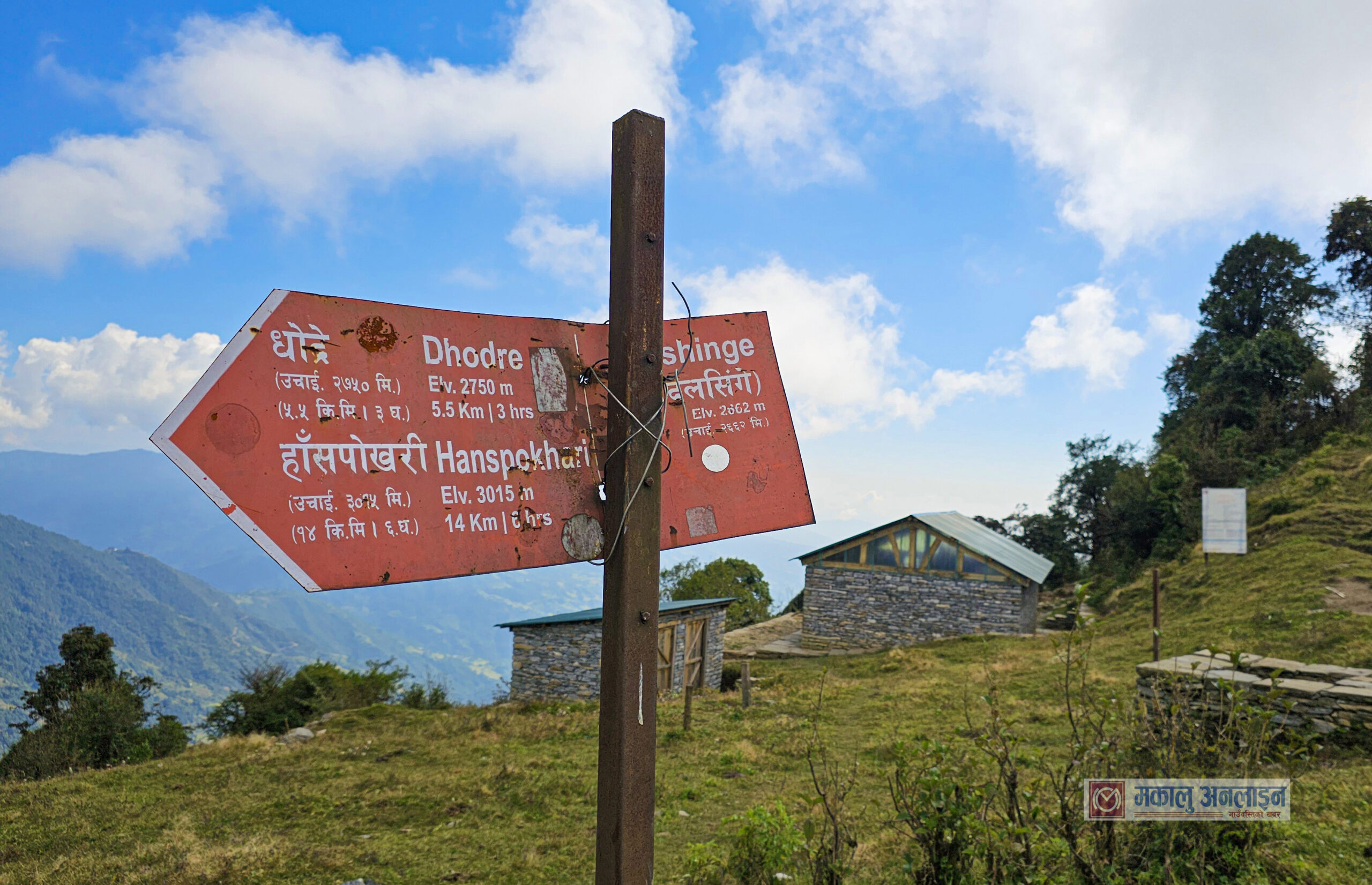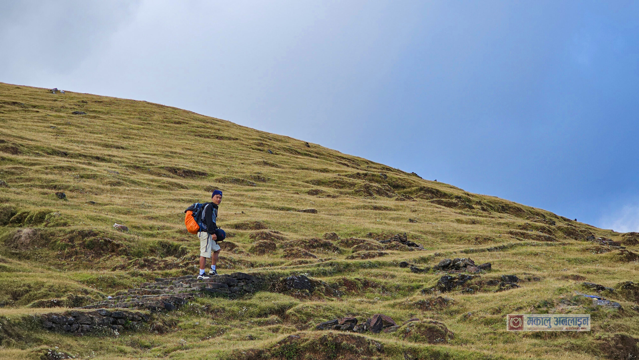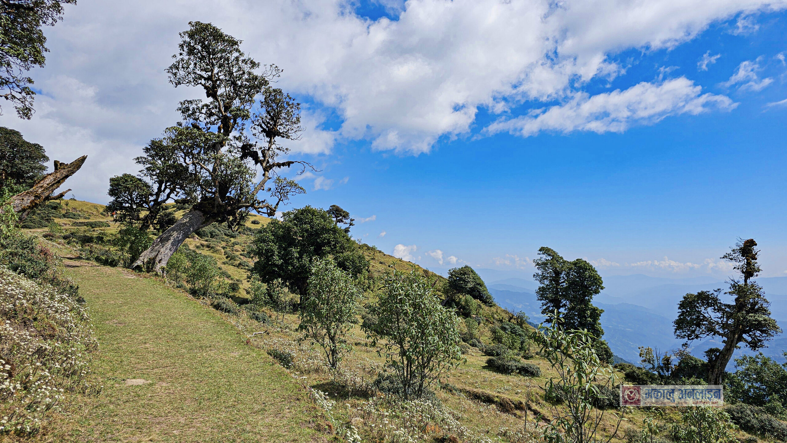 धोद्रे पुग्न केहि अगाडीको पदमार्ग सहितको दृश्य ।