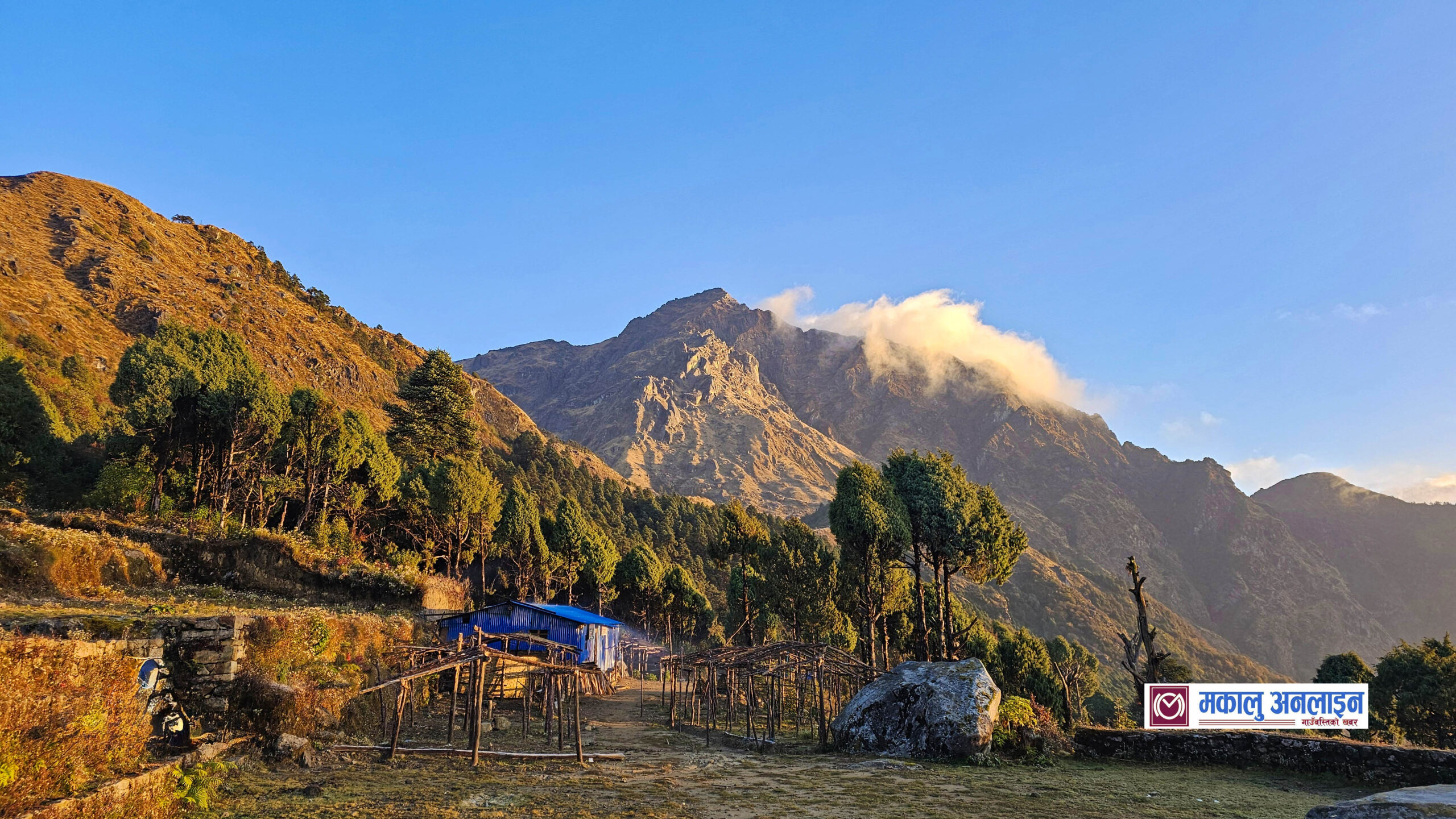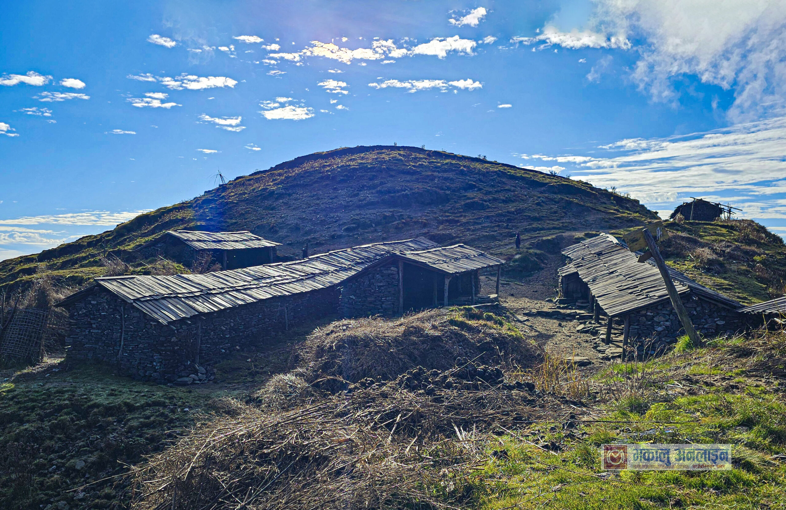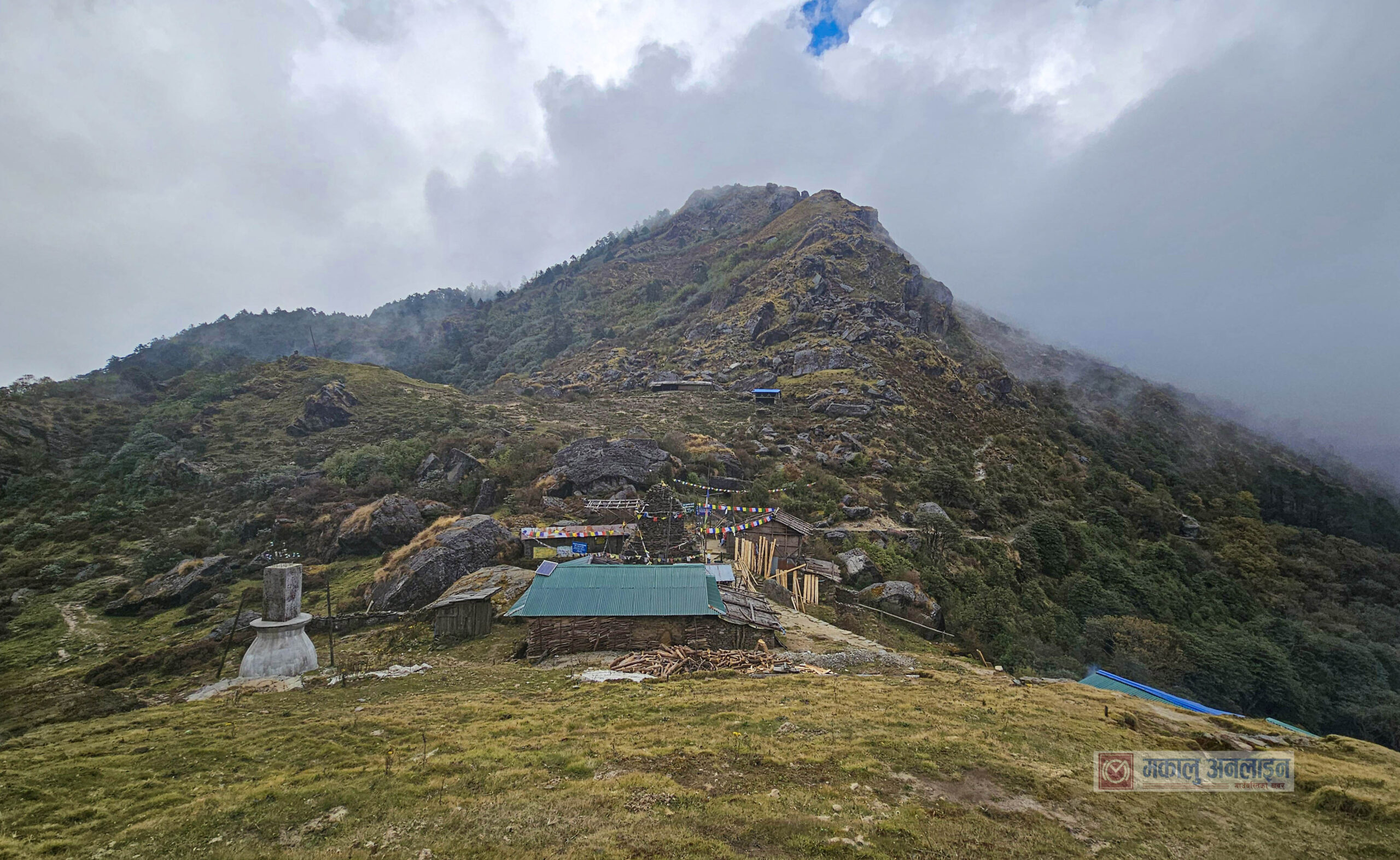 रावाधापः मैयुमदेखि कुलुपोङ्खो भञ्ज्याङ पुग्न नसक्नेहरुको लागि बास बस्ने गोठस्टे ।