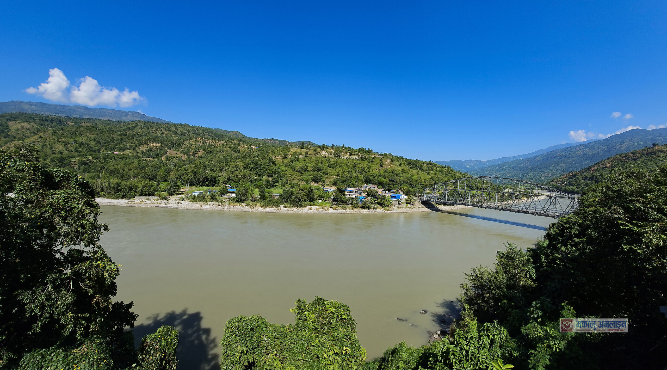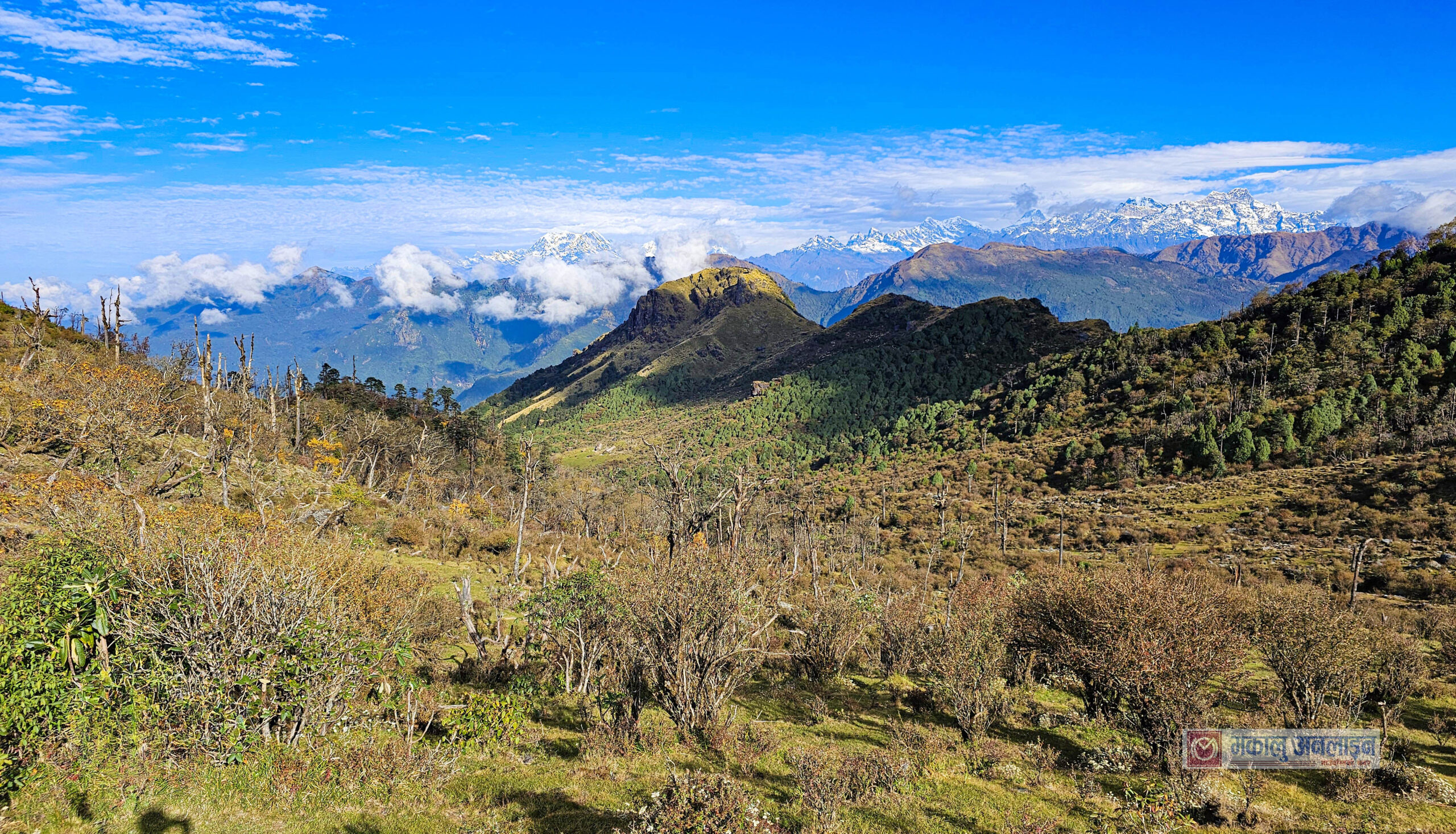 रावाधापबाट देखिने विभिन्न हिमश्रङ्खला सहितको दृश्य ।