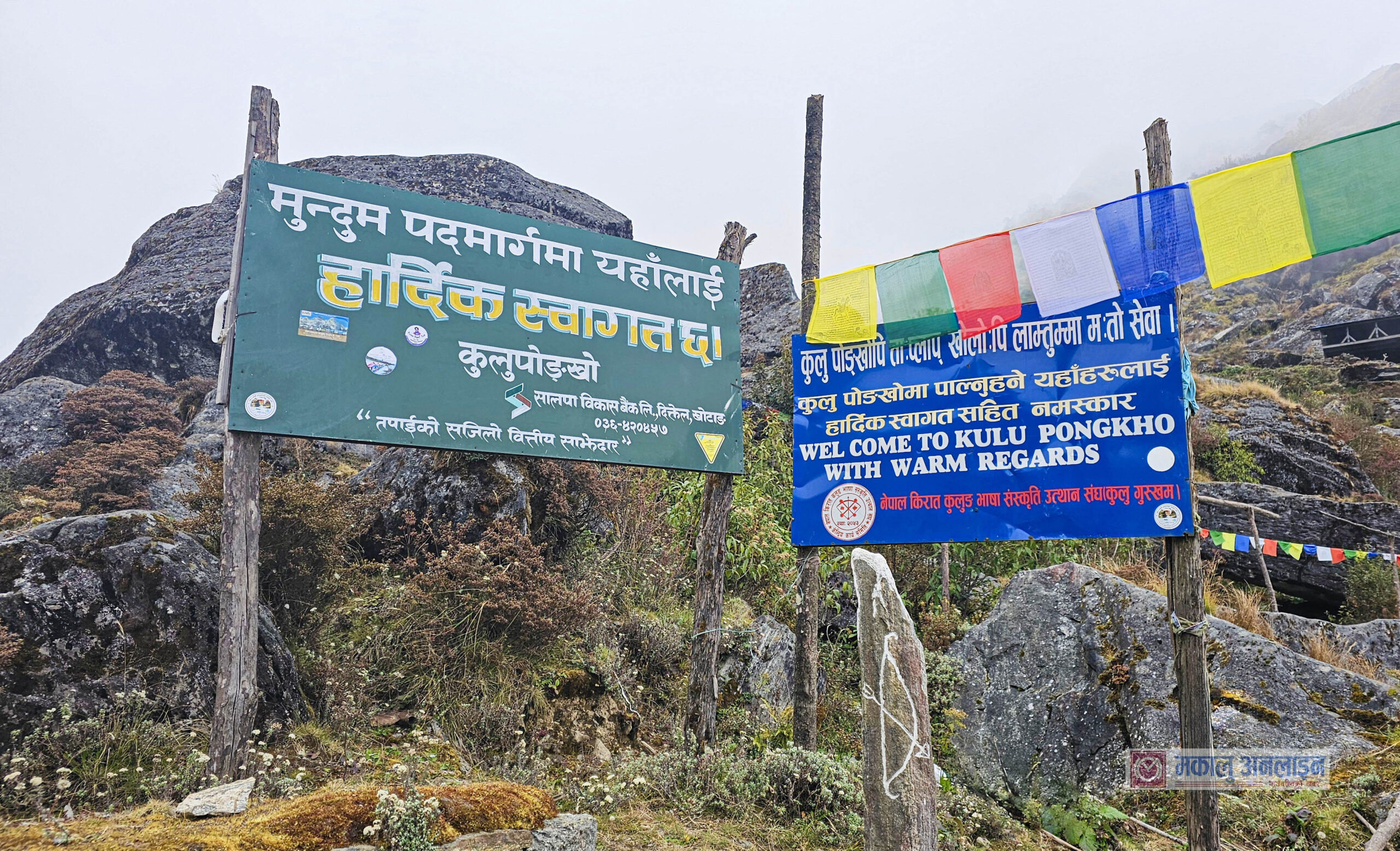 कुलुपोङ्खो भञ्ज्याङमा राखिएको स्वागत बोर्ड ।