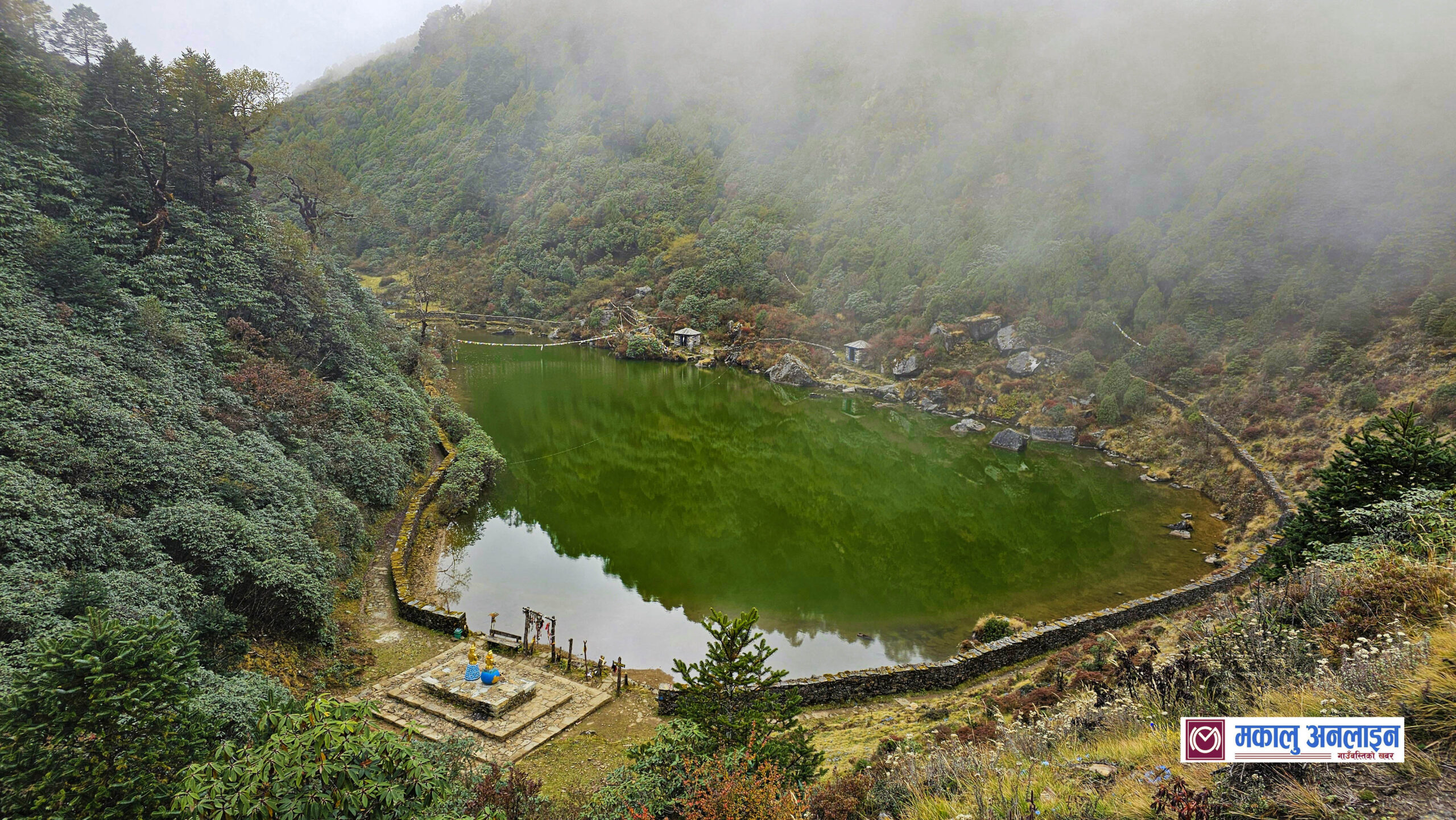 मैयुममा रहेकाे हाँसपाेखरी ।