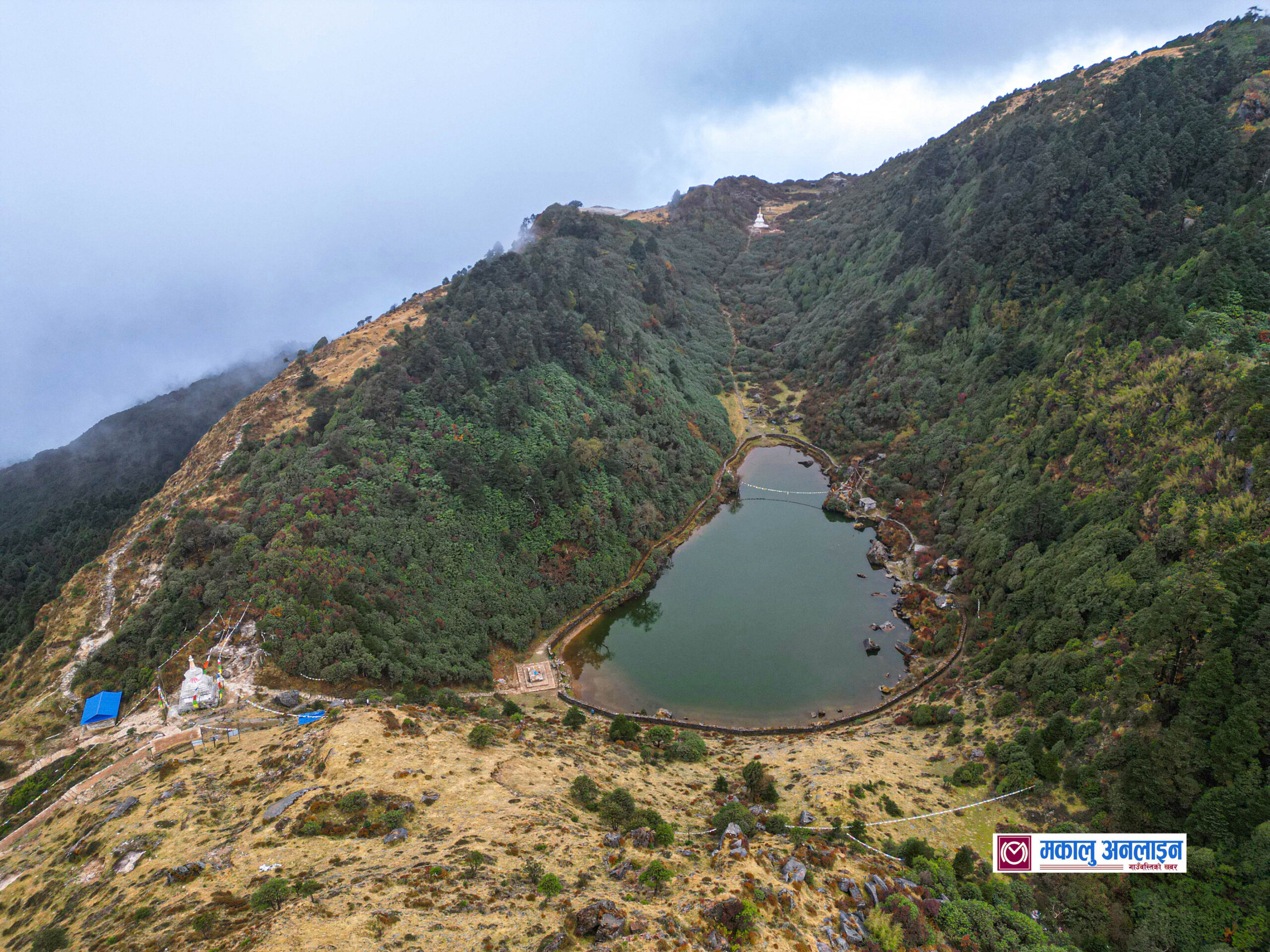 ड्रोनबाट खिचिएको सिलिछो पिक सहितको दृश्य ।