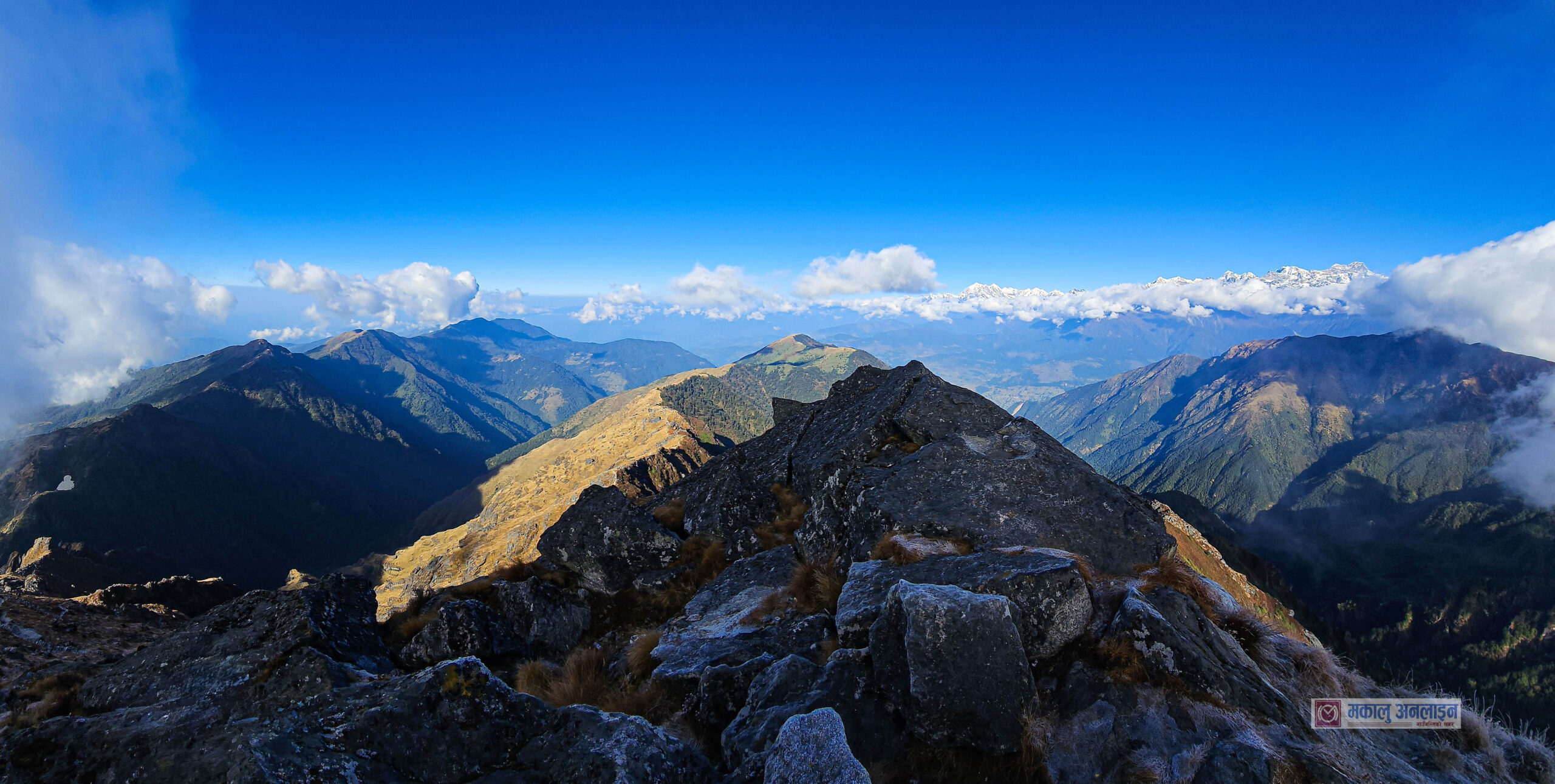 मैयुम टपबाट देखिएको विभिन्न हिमश्रृङ्खलाहरु ।
