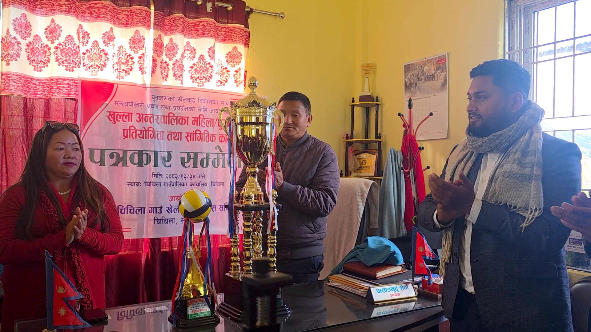 खेलकुद विकास समिति अध्यक्ष आशिष गुरुङको अध्यक्षतामा आयोजित पत्रकार सम्मेलनमा गाउँपालिका अध्यक्ष पासाङ नुर्वू शेर्पा, उपाध्यक्ष मनकला राई, प्रमुख प्रशासकीय अधिकृत विकास विश्वकर्मा, वडा नम्बर १ का अध्यक्ष पूर्णकुमार राई, वडा नम्बर ४ का अध्यक्ष बालकुमार तामाङ लगायतका जनप्रतिनिधहिरु, कर्मचारीहरु र पत्रकार महासंघ कोशी प्रदेश सदस्य ईन्द्र गिरी लगायत जिल्लाका क्रियाशिल पत्रकारहरुको उपस्थिति रहेको थियो ।