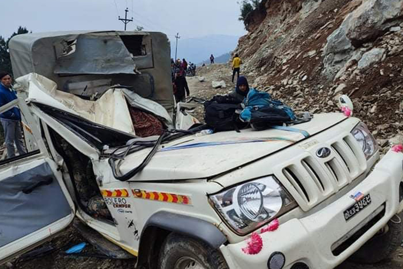 ओखलढुंगामा जीपमाथि ढुंगा खस्यो, तीनजनाको मृत्यु, तीन घाइते