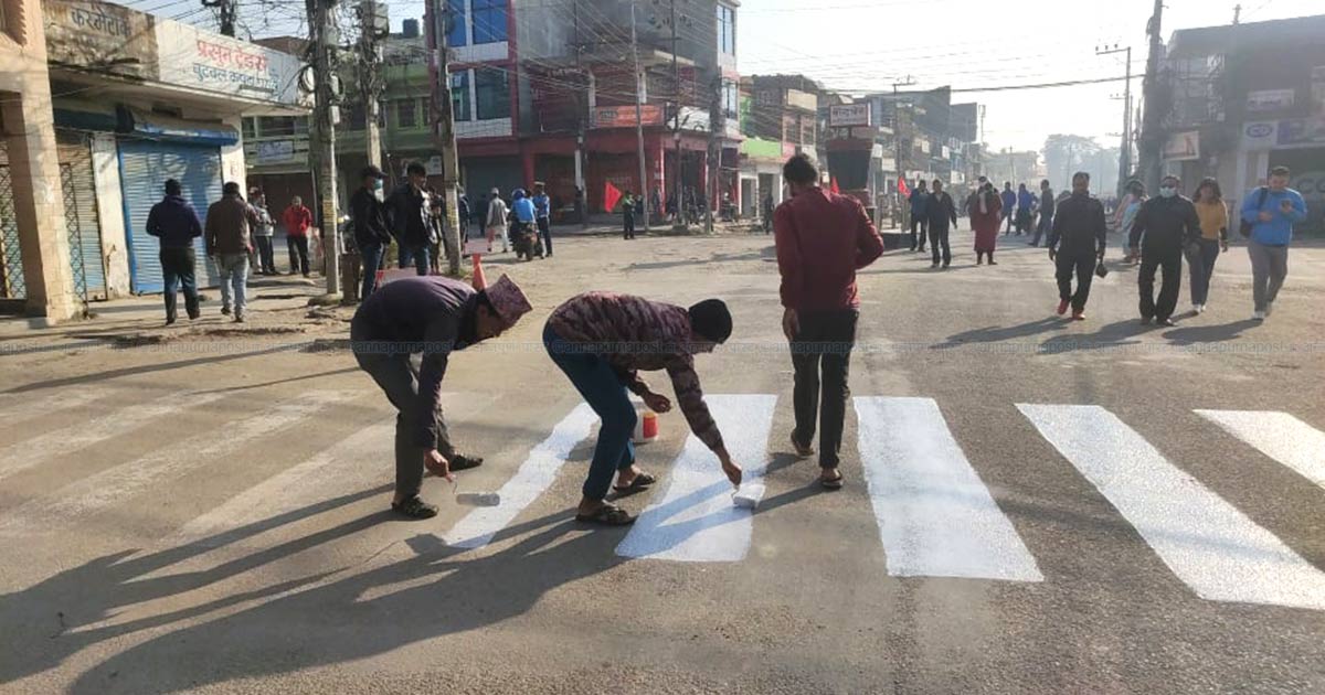 दाङमा बन्दकर्ताले गरे सडक सफाई र ट्राफिक चिन्हको व्यवस्थापन