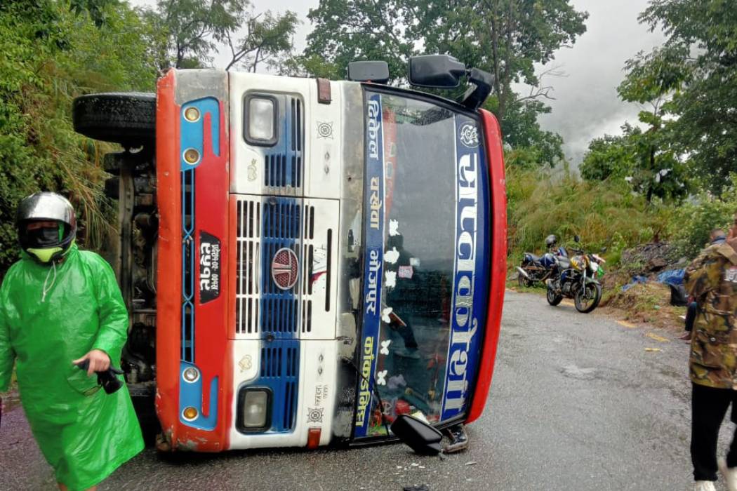 दमकमा बस दुर्घटना, एक जनाको मृत्यु, २१ घाइते